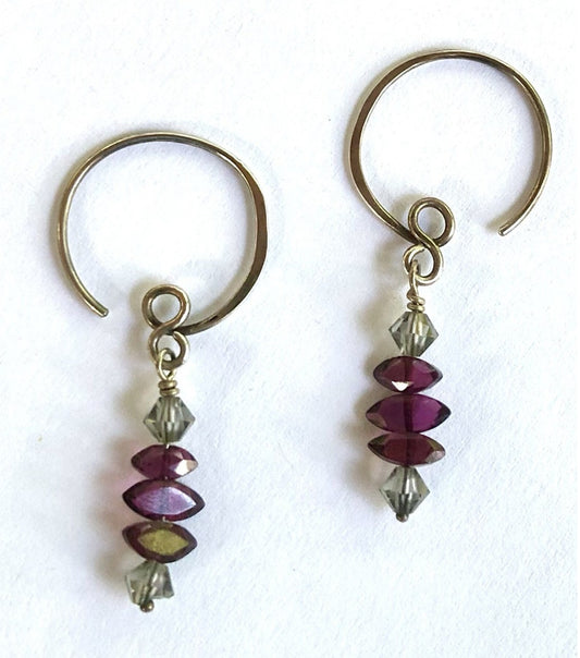 Petite Silver Hoops with Garnet and Crystal