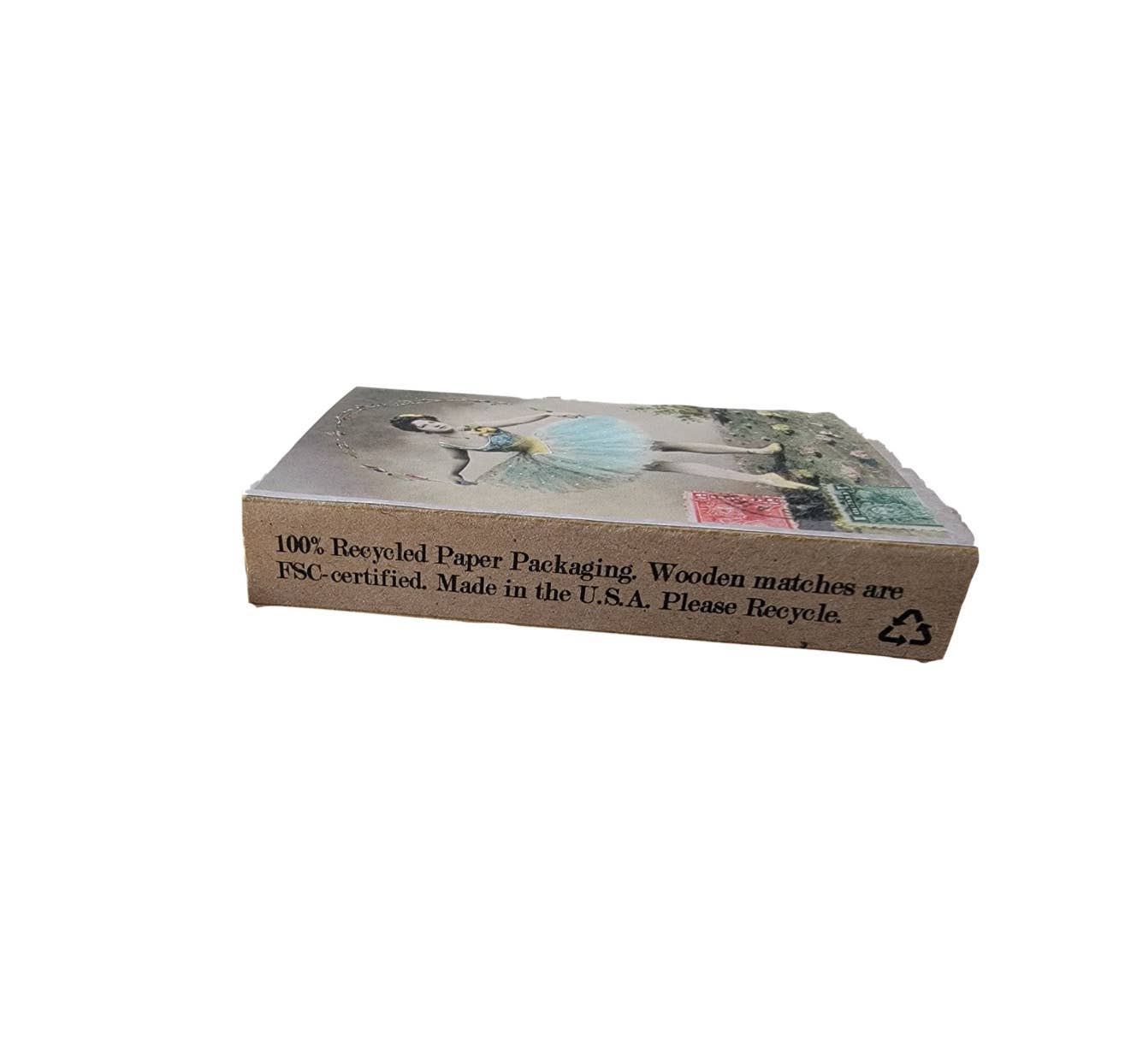 Handcrafted "Burlesque Beauties" matchboxes by Superior Dry Goods featuring vintage ladies in burlesque costumes. Each box is made entirely by hand through a meticulous 30+ step process. Choose from three distinctive designs: "Nymph In Blue Tutu", "Caped Temptress", and "Pastel Vixen".