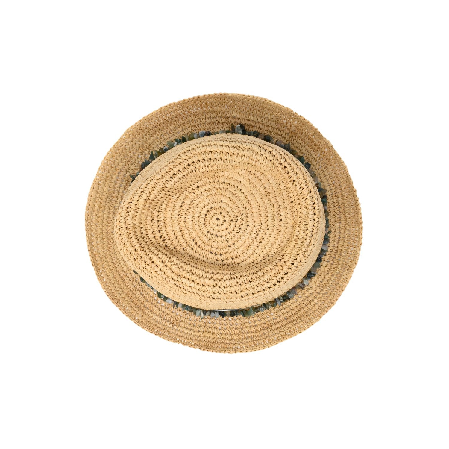 Tropical materials with urban style, the Tahiti short brim sun hat can be worn anywhere your travels take you. Accented with a color-dyed band and matching stones.