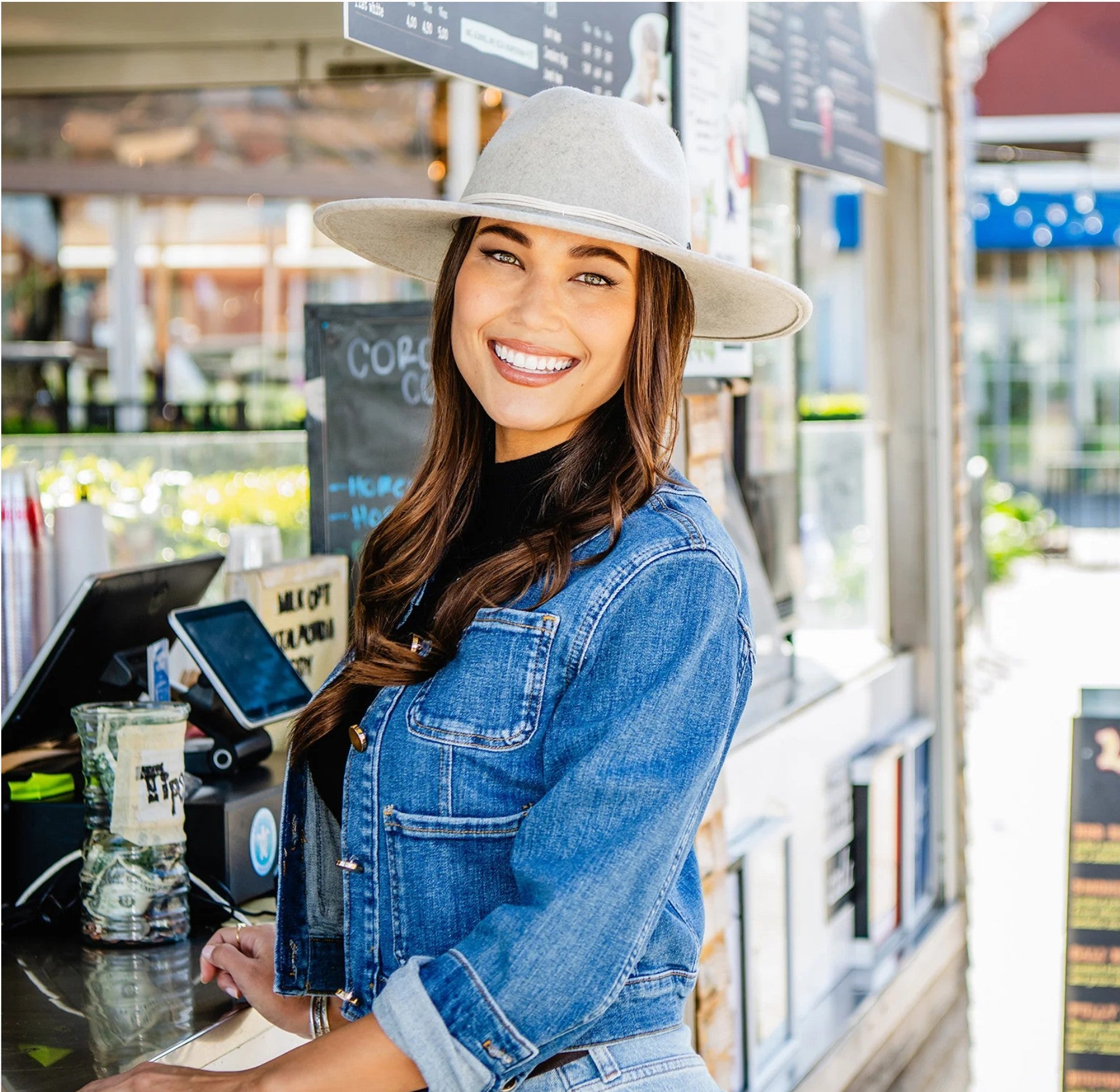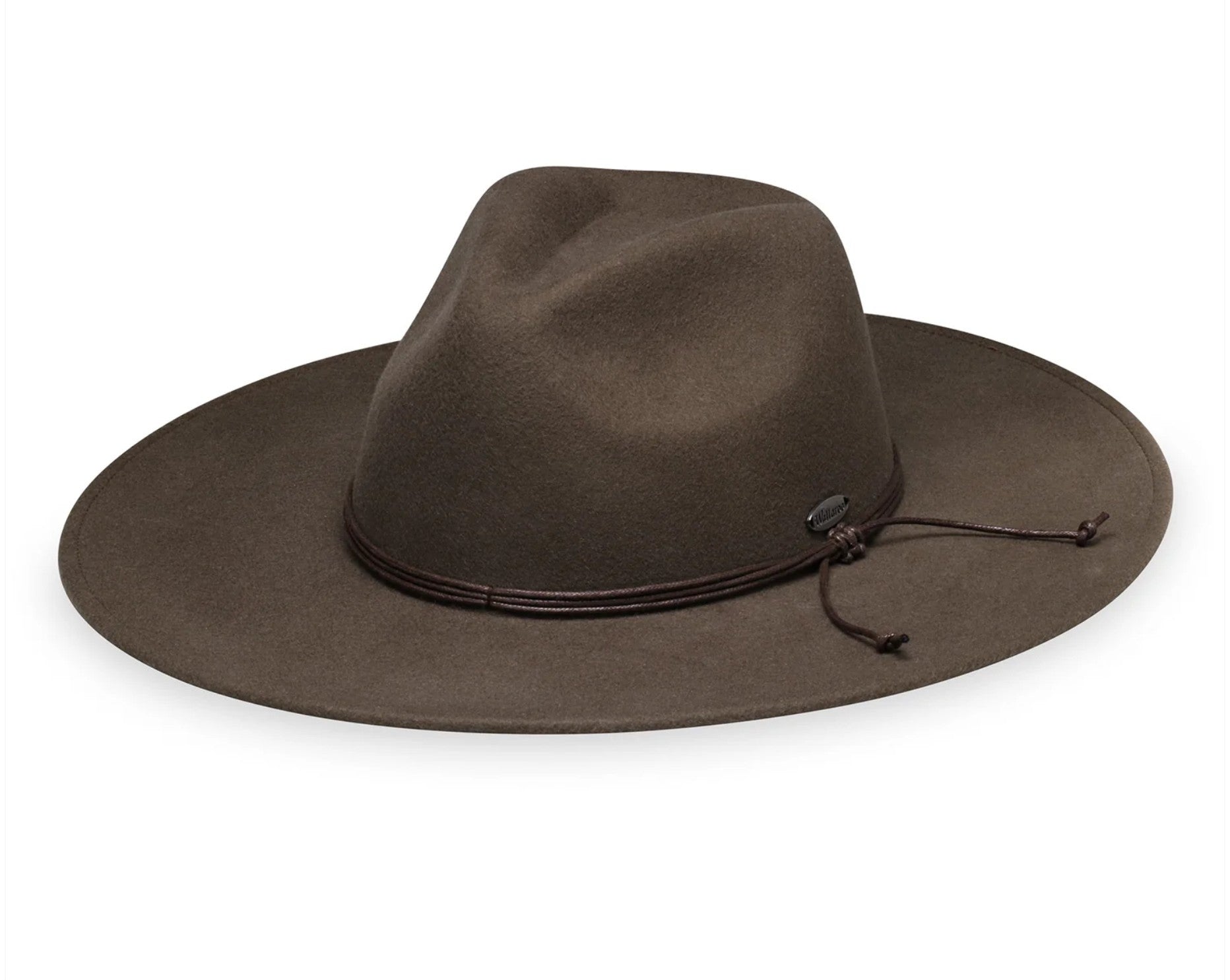 Embrace the allure of the Rocky Mountains with this rugged yet refined wide-brim UPF 50+ wool felt hat. Designed to make a statement, its sturdy yet soft construction blends durability with comfort, ensuring it’s as practical as it is stylish. This versatile hat adds a touch of elegance and flair, whether you’re exploring the great outdoors or enjoying a night out in the city. A must-have accessory for anyone looking to combine functionality with mountain-inspired charm.